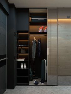 — возможность спланировать нишу под аксессуары; сетчатые и монолитные полки и корзины (для хранения белья и обуви), вешалки для брюк, ремней, галстуков, брючницы, и т.д.