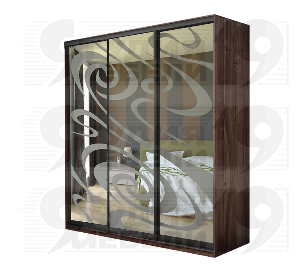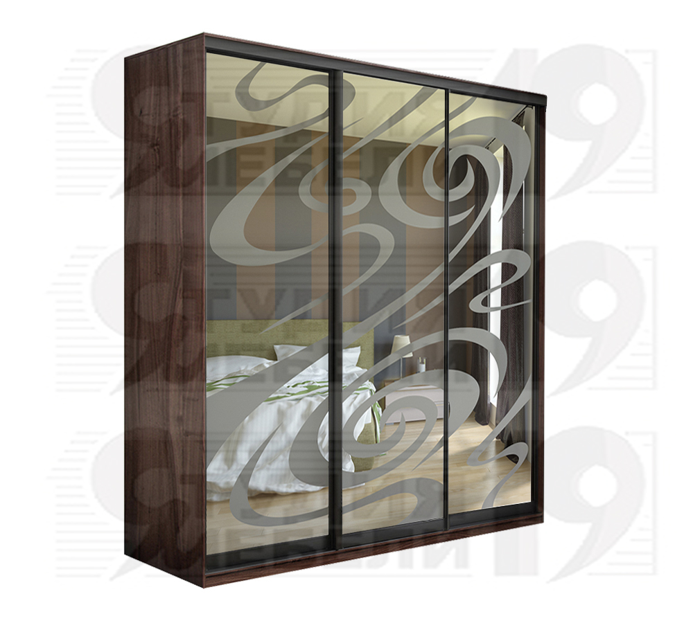 Три створки Зеркало Серебро c пескоструйным рисунком Ш 2100-2500 В 2200-2600 Г 450/600 Вместительный, функциональный шкаф купе выполнен из высококачественных, экологически чистых материалов европейского и Российского производства. Шкаф купе может быть как отдельно стоящим так и встроенным, его возможно разместить в любом месте: в прихожей, комнате, спальне, балконе, и т.д. — это является основным и самым большим плюсом шкафа купе. Представленная модель может быть выполнена по индивидуальным размерам.