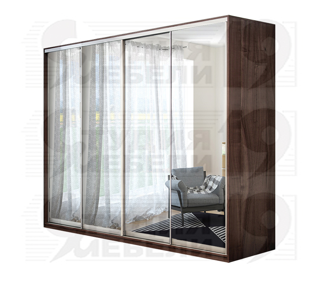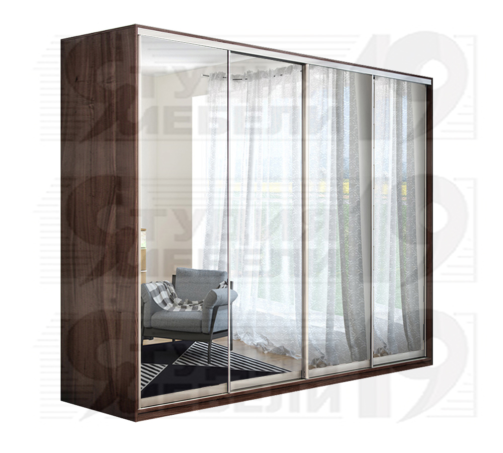 Четыре створки Зеркало Серебро Ш 2600-3000 В 2200-2600 Г 450/600 Вместительный, функциональный шкаф купе выполнен из высококачественных, экологически чистых материалов европейского и Российского производства. Шкаф купе может быть как отдельно стоящим так и встроенным, его возможно разместить в любом месте: в прихожей, комнате, спальне, балконе, и т.д. — это является основным и самым большим плюсом шкафа купе. Представленная модель может быть выполнена по индивидуальным размерам.