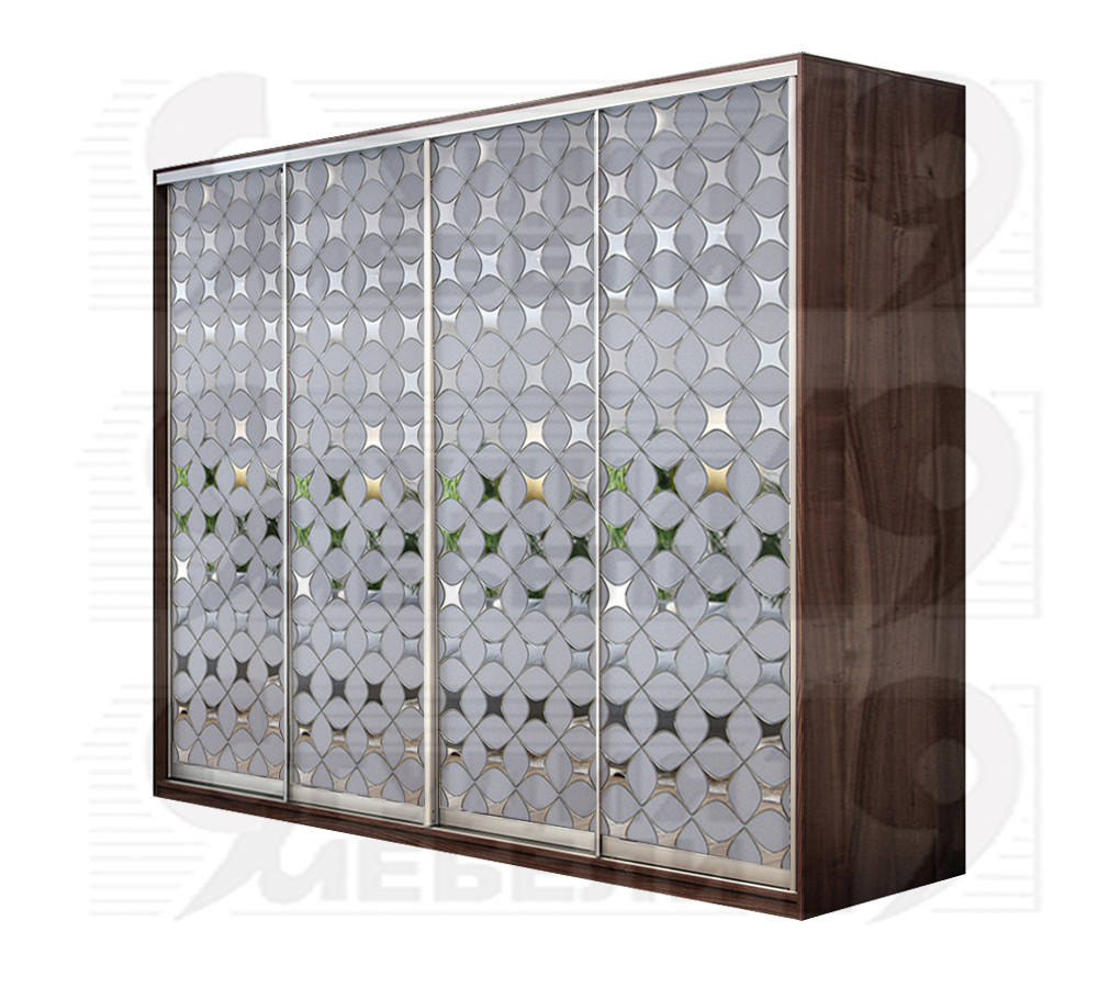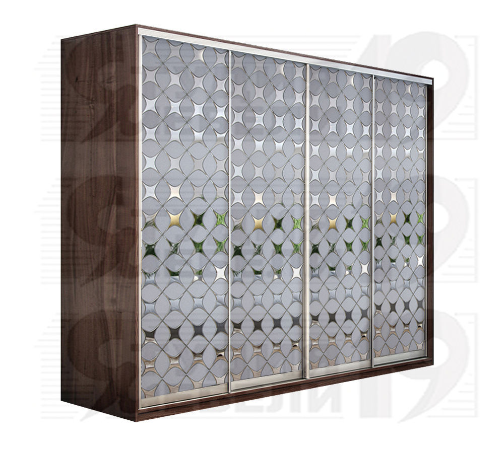 Четыре створки Витраж на Зеркале Серебро Сатин Ш 2600-3000 В 2200-2600 Г 450/600 Вместительный, функциональный шкаф купе выполнен из высококачественных, экологически чистых материалов европейского и Российского производства. Шкаф купе может быть как отдельно стоящим так и встроенным, его возможно разместить в любом месте: в прихожей, комнате, спальне, балконе, и т.д. — это является основным и самым большим плюсом шкафа купе. Представленная модель может быть выполнена по индивидуальным размерам.
